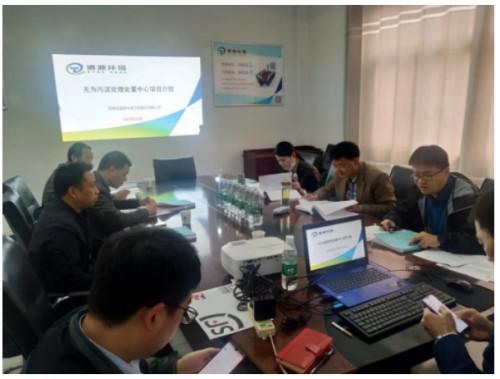 会上,通源环境何光亚向与会专家和领导汇报了无为市污泥高干脱水炭化处置工程的工艺流程及关键技术、工程设计建设和验收情况、工程运行效果等内容。
