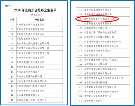 12月15日,根据《关于公布2020年度山东省瞪羚、独角兽企业的通知》鲁工信创[2020]222号文,省工业和信息化厅确定5家企业为2020年度山东省独角兽企业、372家企业为2020年度山东省瞪羚企业。双山真空作为山东省真空设备龙头企业,以领先的科技研发和稳定增长的市场占有率入选为2020年度山东省瞪羚企业!