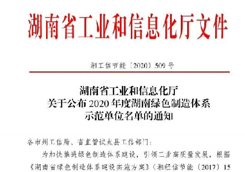 2020年度湖南绿色制造体系示范单位