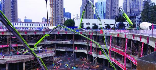 施工方经过严格论证对比后,选用了中联重科63米、56米泵车担纲该项目浇筑任务。