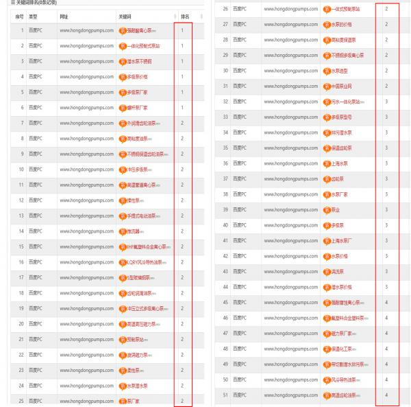 3、该企业网站优化是属于整站优化效果,共有超过100个关键词优化至百度首页。
