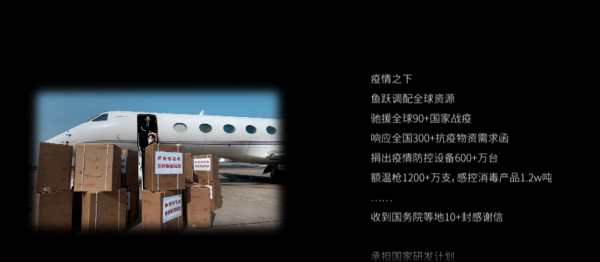 疫情之下,鱼跃医疗调配全球资源,驰援全球90+国家战疫,响应全国300+抗疫物资需求函,捐出疫情防控设备600w台,额温枪1200w+支,感控消毒产品1.2w吨......