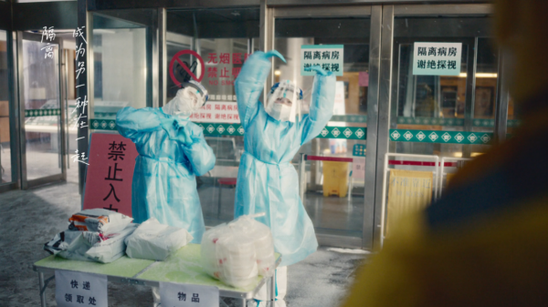 影片一开始,就是疫情下为了呼吸、为了生活奔波的人们,也是我们各自真实的生活常态:空荡荡教室里的孩子、为出入车辆测量体温的保安、正在艰难地生产的母亲……