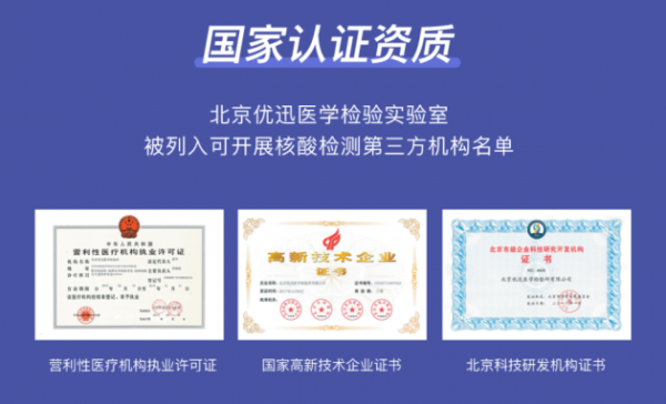 为了严防环京地区疫情传播风险,妥善做好环京地区在京通勤人员新冠病毒核酸检测工作,2021年1月,北京市从全市252家机构中,重点确定了16家核酸检测机构,为朝阳、通州、海淀、昌平、丰台环京地区通勤人员较多的单位提供核酸检测服务,北京优迅医学检验实验室有限公司(以下简称“优迅医学”),位列此次公布的名单之中。