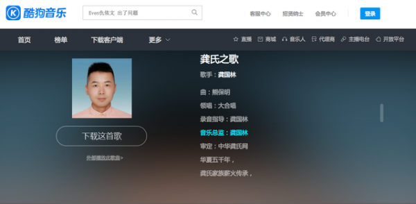 龚氏家族歌曲《龚氏之歌》已经隆重全网上线