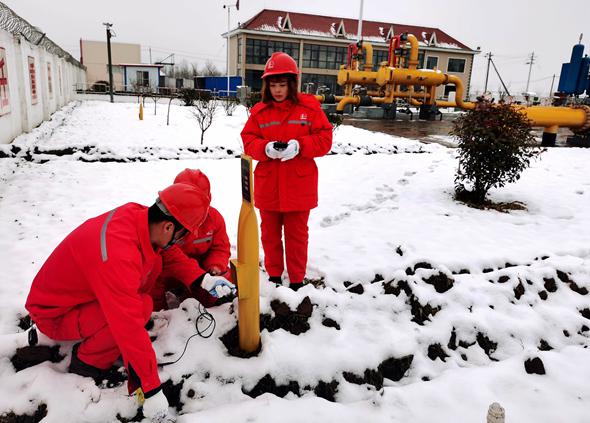 图为2月25日凌晨,山东济南地区降下了2021年的*场瑞雪,天然气分公司山东管道公司一线员工在雪中巡检输气设备。(段红云 曾义根)
