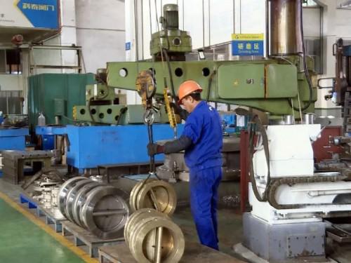 在位于船寮镇赤岩工业区的浙江科泰阀门有限公司,一台台数控车床正在进行切槽、钻孔作业,员工们正投入到紧张的生产任务中。