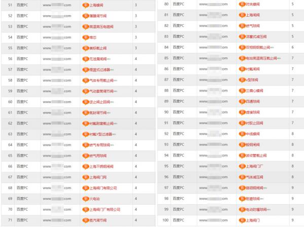下图是XX阀门企业整站优化的部分效果图,整站优化有超过100个词已上百度首页。