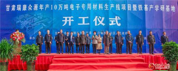 4月9日,甘肃瑞康众源年产10万吨电子专用材料项目开工仪式在甘肃省白银市平川经济开发区举行。该项目占地面积212亩,工程总投资4.48亿元,共涉及45个建设子项,投产后工业产值规模预计近千亿。