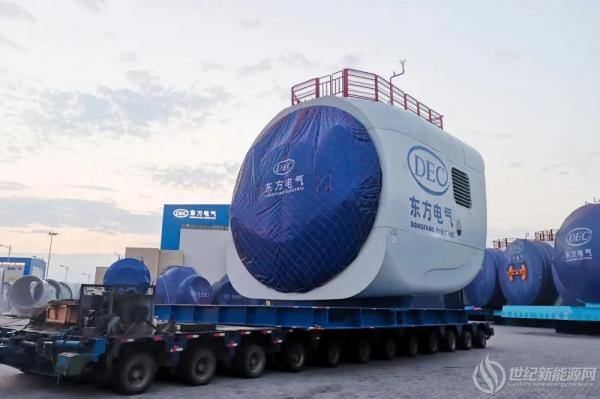 4月10日,装载着浙江玉环一期项目首批2台7MW海上风电机组的重卡,迎着清晨的朝霞,缓缓驶出东方福建风电厂区,前往码头,通过大型船舶运往项目现场。