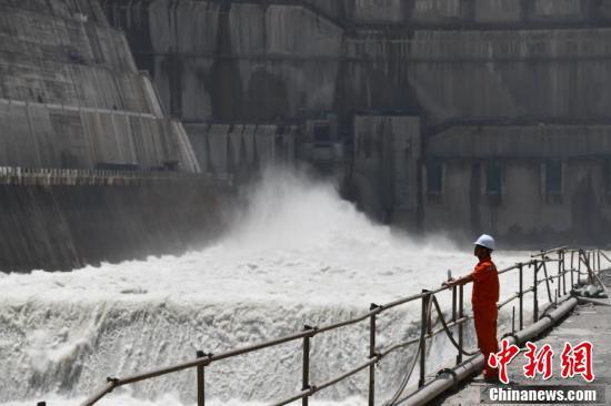 4月22日,工作人正在白鹤滩水电站坝前观察蓄水情况。当日,白鹤滩水电站蓄水高程已达到了716.84米。 白鹤滩水电站位于四川省凉山州宁南县和云南省昭通市巧家县境内,是目前世界在建最大的水电站项目。