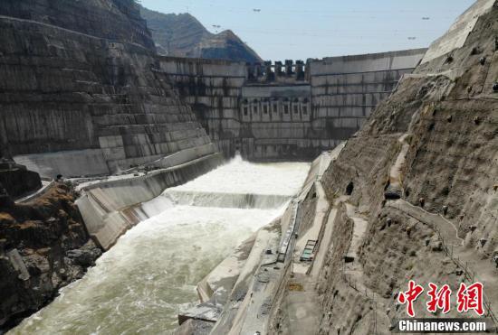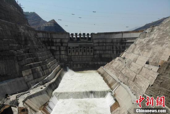 4月22日,蓄水中的白鹤滩水电站。当日,白鹤滩水电站蓄水高程已达到了716.84米。白鹤滩水电站位于四川省凉山州宁南县和云南省昭通市巧家县境内,是目前世界在建最大的水电站项目。 (中新社记者 张浪 摄)