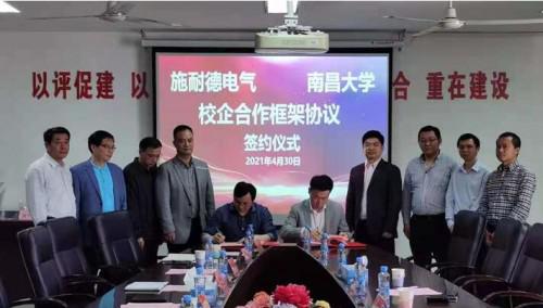 中国南昌,2021年4月30日——施耐德电气与即将迎来办学百年校庆的南昌大学签署战略合作协议,将共同开展包括课程教学、产品培训、技巧交流、技术竞赛、实践教学在内的多项产学、产研合作,在这一办学里程碑上共同开启绿色智能制造人才培养的新篇章。南昌大学国有资产与实验室管理处处长、国有资产管理监督委员会办公室主任廖梦园,南昌大学机电工程学院党委书记付广华,施耐德电气副总裁、工业自动化中国区最终用户业务负责人胡晓,施耐德电气工业自动化事业部校企合作项目负责人陈斌等出席本次签约仪式。