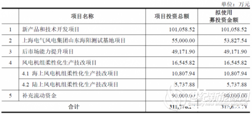 发行人本次募投项目预计使用募集资金为31.06亿元,其中,10.11亿元用于新产品和技术开发项目,5.38亿元用于上海电气风电集团山东海阳测试基地项目,4.92亿元用于后市场能力提升项目,1.65亿元用于风电机组柔性化生产技改项目,9亿元用于补充流动资金。
