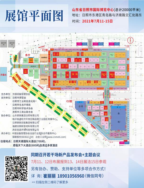 2021中国钢铁产业链新技术新装备展洽会将在山东省日照市国际博览中心举行,展出总面积2万平方米,展洽会将使用展馆C区C1馆和C2馆近300多个展位,有超过近30家企业拿下特装的展示空间,众多有实力、有品质、有规模的企业积极参与到中国钢铁展洽会中,为钢铁产业发展加上了强劲的助推器。