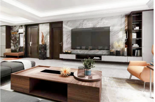 大理石和岩板凭着其与生俱来的细腻质感和漂亮的天然纹理,搭配板、墙面、沙发等软装配饰,营造大气、奢华、高贵典雅的质感。