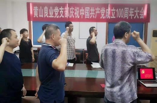 2021年6月30日下午,在公司会议室召开了黄山良业党支部庆祝中国共产党成立100周年大会,全体党员参会,隆重纪念中国共产党建党100周年。党支部书记带领全体党员重温入党誓词,继承革命传统,牢记光荣使命。