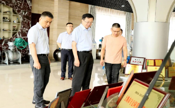 8月13日上午,嘉定区政协主席沈华棣、专委办主任盛卫华一行,在华亭镇党委副书记、镇长尹小兴,镇党委副书记顾颖健等领导的陪同下,来到上海沪工阀门厂(集团)有限公司开展实地走访调研工作。