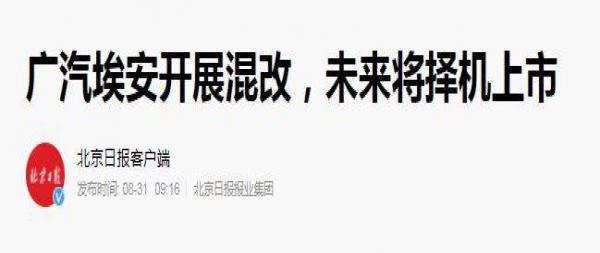 8月30日晚,广汽集团发布相关公告称拟通过对新能源汽车研发能力及业务、资产的重组整合,推进广汽埃安的混合所有制改革,对其增资扩股并引入战略投资者。未来广汽埃安将充分利用资本市场,积极寻求于适当时机上市。此次混改,不仅有利于广汽埃安扩充资本实力,优化治理结构,实现多元化股东结构,同时也有利于建立企业创新体制机制。