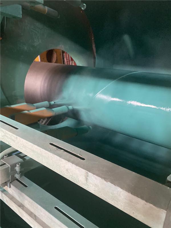 首先对钢管外观进行检查,如发现吊运当中发生弯曲、变形的钢管和重皮、弯曲及椭圆度超标等明显缺陷的钢管,予以挑出,不得进入下道工序。其次为了增强涂层附着力,延长使用寿命,我们进行二次除锈,让除锈等级达到且高于Sa2.5级要求,目视与标准试片对比;锚纹深度达到70-90um,用锚纹深度测试仪测量。表面预处理后,将钢管表面附着的灰尘及磨料清扫干净。