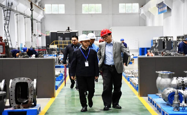 2021年10月20日,上海市委融办常务副主任吴磊、副主任韦平、总工程师付春红等一行莅临上阀股份实地调研,上阀股份董事长王建克及相关部门负责人接待并陪同参观了上阀阀门试验研究中心及生产现场。