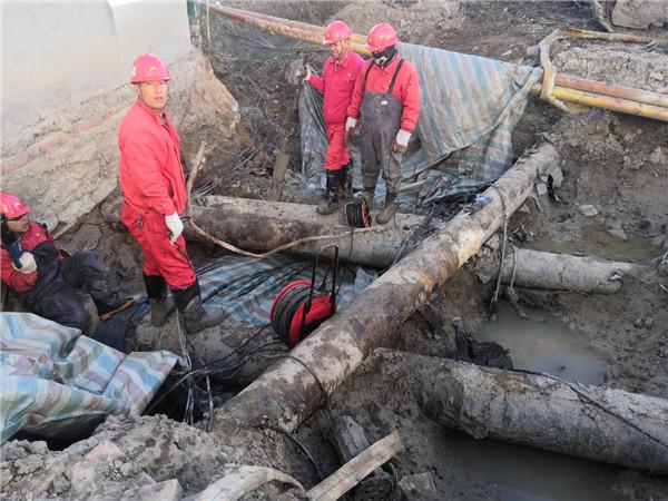 由于施工位置位于地下,因此施工前他们将所要施工的管线全部找出,抽出地下积水,人工配合机械清理操作坑并挖好集水坑,确认好管线切割位置后,清除切割处附近的防腐层,量出管线管径,他们便根据实际管径和管线位置预制好连通管段。