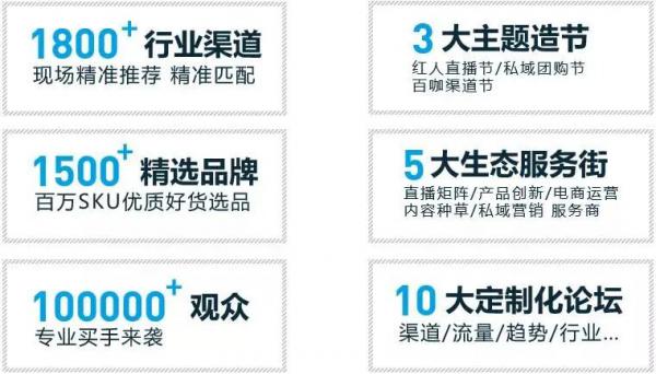 据悉,本次展会展商超过1500家,预计超过100000专业观众莅临参展;展览规模64000平方米,汇聚1500+精选品牌/1800+行业渠道、服务商,同期更有10+不同主题高峰论坛和8+渠道对接展区/会。