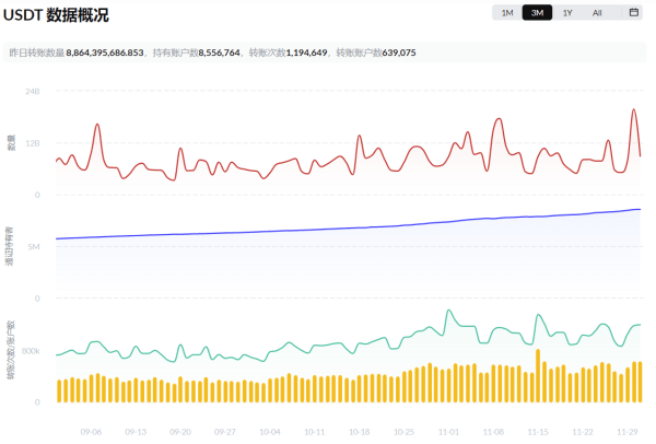 或许很多人对这一数字并不敏感,但简单比较则会有完全不同的感受。我们都知道,美国支付巨头PayPal是传统支付领域的标杆,拥有近4亿的全球用户基础,在跨境转账上也有着很强的影响力。据最新财报,PayPal第三季度总支付量为3100亿美元,也就是单日平均支付量33.7亿美元。而波场TRON过去几周的日均稳定币转账额已经来到了80亿,甚至100亿美元以上,数倍于PayPal。简单来说,波场只需不到一个月便可以达到PayPal一整个季度的支付总量。