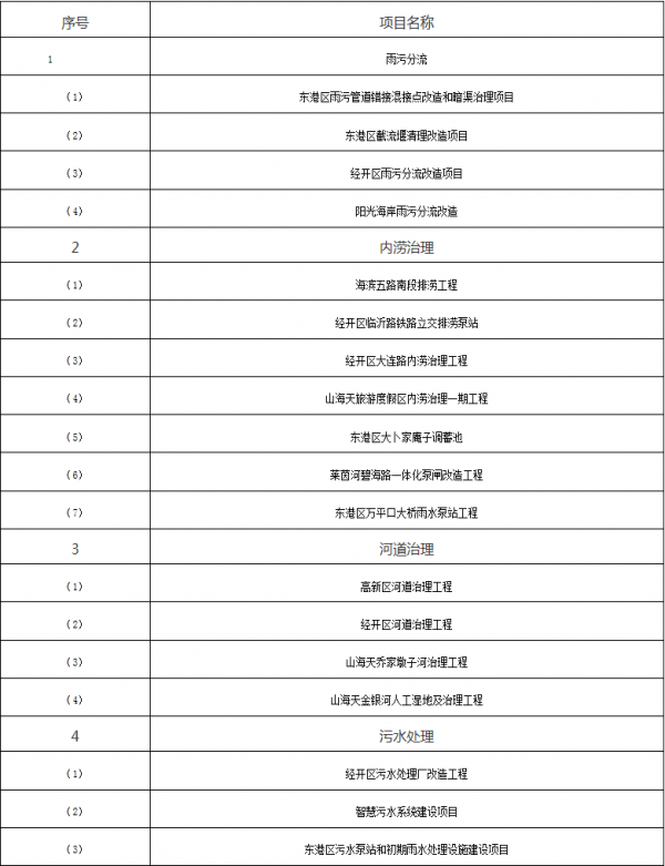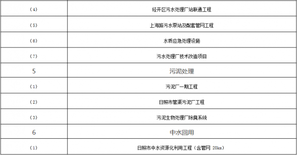 主要建设内容包括雨污分流工程、内涝治理工程、河道治理工程、污水处理工程、污泥处理工程、中水回用工程六个类型,共 26 个分项工程。