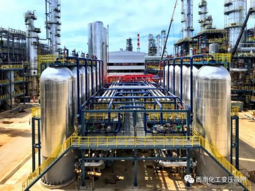 西南化工凭借PMB一期PSA装置先进性,赢得了恒逸文莱业主的充分信任和认可,2020年8月,在恒逸文莱PMB二期石油化工项目特大型PSA装置招标中,再次击败国际竞争对手,六套PSA装置全部中标,氢气总产量超60万标方/小时。