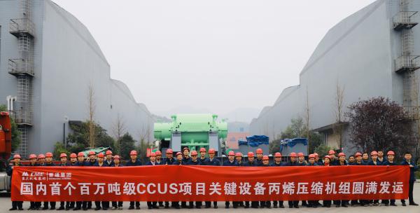 12月23日上午,重庆通用公司为齐鲁石化国内首个百万吨级CCUS项目生产的关键设备丙烯压缩机组圆满发运。