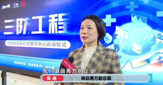 “三防工程”启动后,北京广播电视台科教频道中心《法治进行时》栏目将根据真实案例制作科普节目推广宣传;中国广告协会将对企业品牌的宣传方式、用语进行规范指导,对虚假宣传或不法欺诈类的广告形式防微杜渐;御品膏方将积极响应号召,在提高产品质量的同时提升自身行业自律,进而推动行业良性健康发展,为实现“健康中国2030”贡献力量。