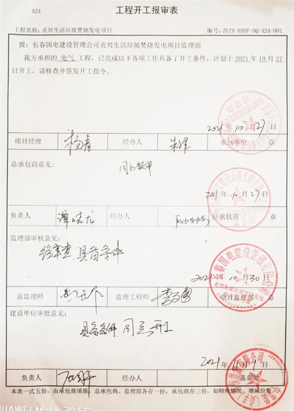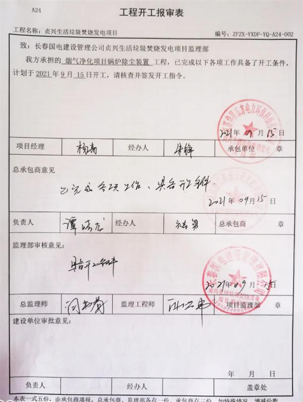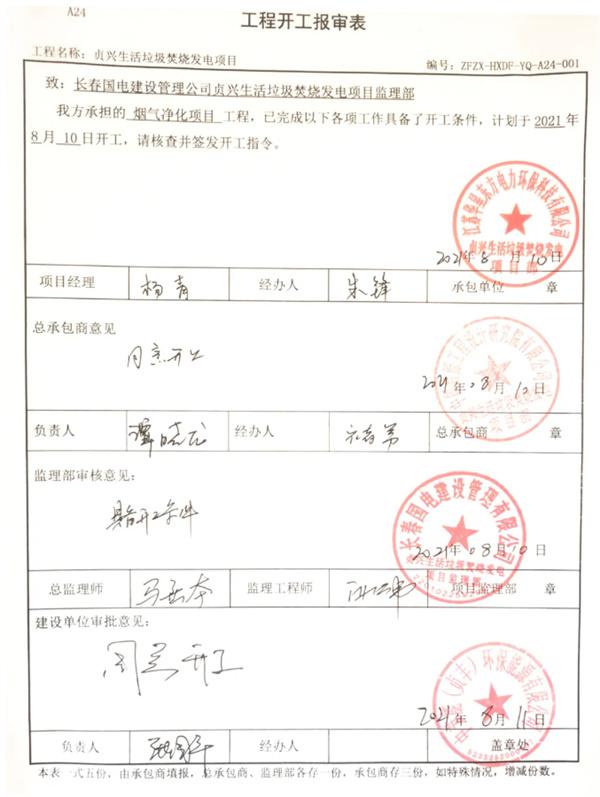 :华星东方公司承建的贵州省贞兴生活垃圾焚烧发电项目烟气净化工程于2021年8月11日开工建设。