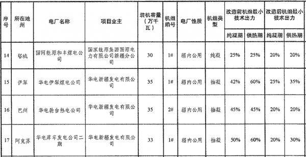 其中,21个项目要求,纯凝期改造后机组最小技术出力达到20%,其他项目则要求在25%-30%。