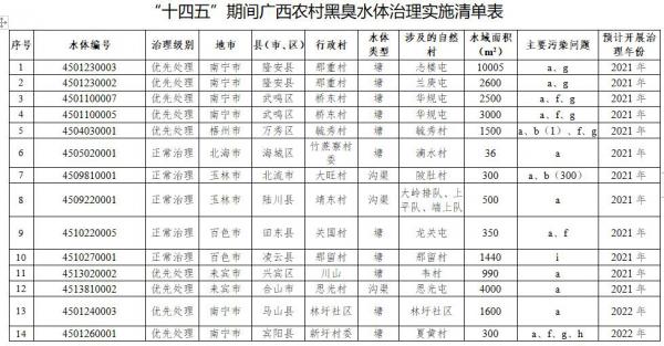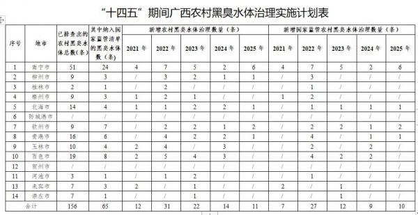 为贯彻落实《中共中央国务院关于深入打好污染防治攻坚战的意见》《农村人居环境整治提升五年行动方案(2021—2025年)》《“十四五”土壤、地下水和农村生态环境保护规划》,稳步推进农村黑臭水体治理,深入打好农业农村污染治理攻坚战,广西近日发布《“十四五”广西农村黑臭水体治理实施方案》。