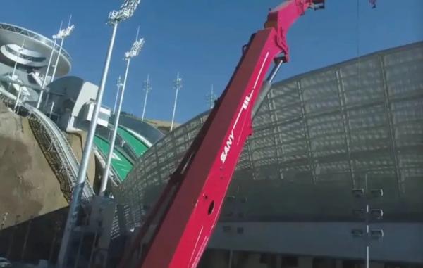 ▲三一泵车在崇礼国家跳台滑雪中心协助拍摄