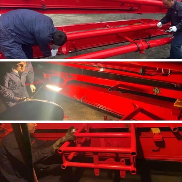 ▲河北三一服务团队连夜完成泵车臂架“变装”