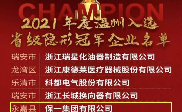 日前,2021年浙江省“隐形冠军”企业名单出炉,加上去年新增的保一集团、迦南科技、特技阀门三家企业,我县已有省级隐形冠军企业9家,排名位居全省县级第二,山区26县“隐形冠军”第一。