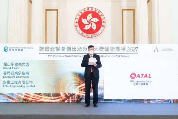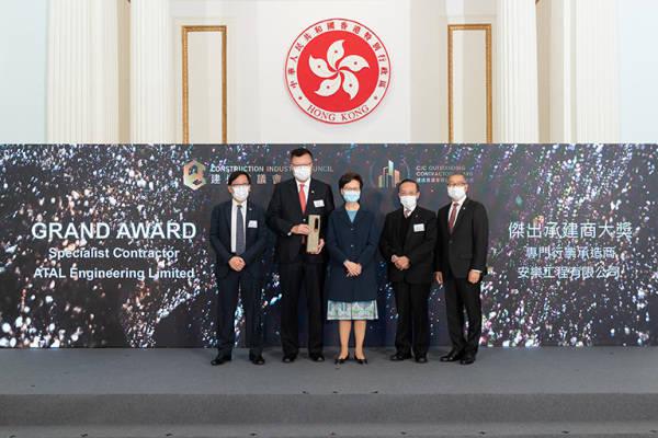 安乐工程于「建造业议会杰出承建商大奖颁奖典礼2021」获颁「杰出承建商大奖」,由行政长官林郑月娥女士担任主礼嘉宾