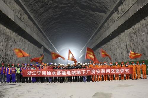 3月17日,宁海抽水蓄能电站地下厂房安装间移交工作面并举行了仪式。