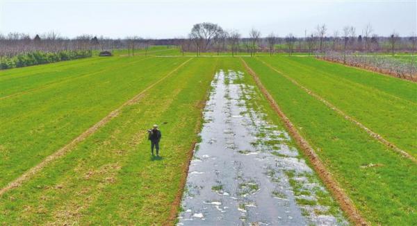 刚浇完自家麦地的乾县王村镇南索村3组村民。本报通讯员 李凯摄