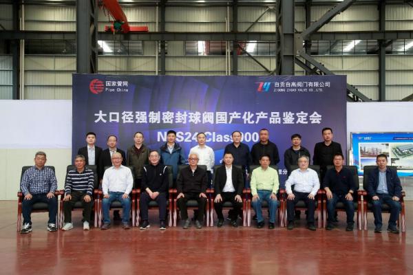 2022年3月8日,中国机械工业联合会、中国通用机械工业协会组织在自贡召开了由国家石油天然气管网与自贡自高阀门有限公司共同研制的“NPS24 Class900 大口径强制密封球阀”国产化产品鉴定会。
