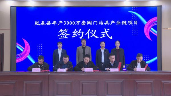 签约仪式上,六口工业园区、县财政局分别与安康盛泰嘉恒阀门有限公司、陕西福源华圣阀门制造有限公司、安康进尔博水暖设备有限公司、安康佰德利阀门制造有限公司、安康腾阳瑞裕机械制造有限公司、安康尚亿流体科技有限公司、安康锦鹏杭汽配件制造有限公司、安康锦盛峰裕科技有限公司、安康玉岚天一铜业有限公司签订年产3000万套阀门洁具产业链项目。