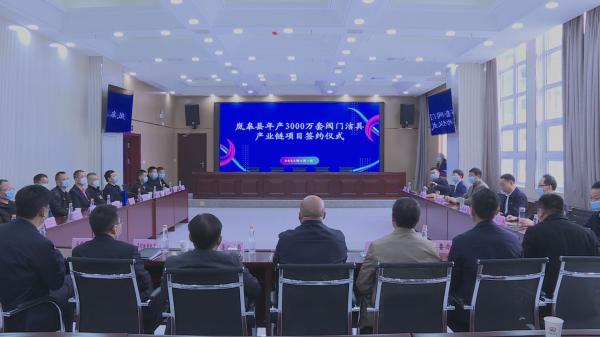 4月1日,我县举行年产3000万套阀门洁具产业链项目签约仪式,市政协副主席、县委书记马宏伟,县委副书记、县长魏小林,县委常委、常务副县长王诚,县人大常委会副主任、发改局局长赵兵出席签约仪式。