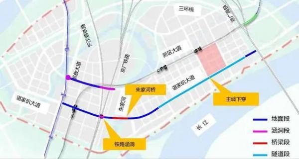 谌家矶大道工程是连接老城、贯穿新城及阳逻中心区的沿江通道,西起解放大道,东至三环线平安铺立交,全长约4.7公里。此次建设包括改扩建和新建道路,含道路、隧道、综合管廊、交通、排水、桥梁、电气、景观、照明等。