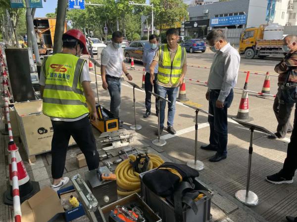 张晓峰一行先后来到范江岸路、康庄南路下穿泵站,实地查看了排水管网检测修复的现场作业流程,查看井室喷涂设备、检测机器人设备,询问相关设备价格、技术参数、验收标准和检测费用等信息,详细了解易涝点整治的相关情况,并听取了排水管网检测修复设施设备应用的现场汇报,现场工作人员就当前排水管网检测及修复相关技术进行了交流探讨。