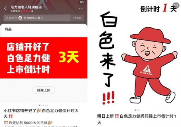 随着相关穿搭笔记的增多,很多小红薯开始对足力健官方发出“邀请”,要求出品白色和黑色款妈妈鞋,其中白色呼声更高。于是足力健又在小红书开启了白色妈妈鞋上市倒计时的内容营销。