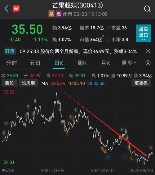 “强综艺”的地位开始有所下降,直接影响了市场的预期。数据显示,芒果超媒在2021年1月达到95元左右的高位之后,一路下跌至目前的35元附近,股价下跌超6成,总市值也蒸发了近1000亿。