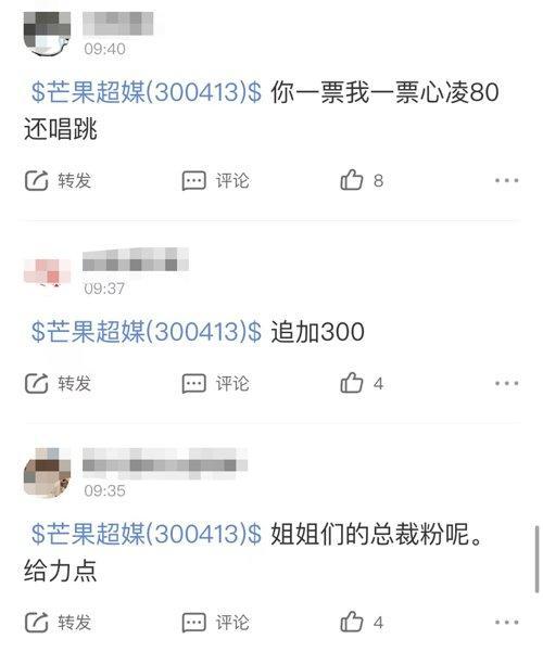 “王心凌男孩”们不仅在短视频平台上支持王心凌,还在股吧里表示,要用钱包支持王心凌。