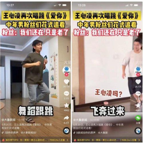 除此之外,在短视频平台上,不少网友秀出男粉丝跟着王心凌唱跳的视频,并纷纷表示" 我们还在,只是老了。" 网络上更将中年男粉丝们称为 " 王心凌男孩"。
